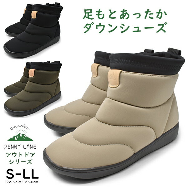 お得情報をメールマガジンにて無料配信中! ⇒登録はこちらブランド PENNY LANE ペニーレイン デザイン ダウンシューズ ミッドカット 革パッチ ラウンドトゥ カラー BLACK ( ブラック ) 黒 BEIGE ( ベージュ ) KHAKI ( カーキ ) サイズ展開(cm) S(約22.5cm) / M(約23.5cm) / L(約24.5cm) / LL(約25.0cm) 素材 アッパー:混紡素材 ソール(底材):合成底 商品説明 『かわいくて履きやすい』がブランドコンセプトPENNY LANEのアウトドアシリーズ。