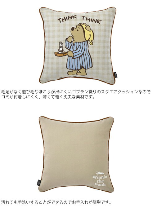 クッション 40x40cm くまのプーさん 角型 プーさん ディズニー スクエア かわいい ゴブラン織り 80306 Disney フロアクッション 座布団 正方形 ソファクッション 背当て 洗える 手洗い 刺繍入り 背もたれ キャラクター インテリア
