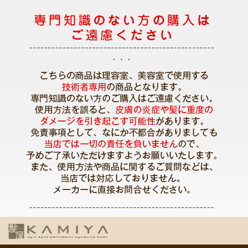 使用方法 こちらの商品は、美容室・ヘアサロンで使用する業務用(プロ用)商品となります。