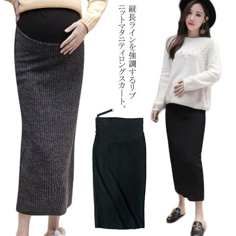 【楽天ランキング1位入賞】マタニティ ロング スカート アジャスター付き ジャージ フリーサイズ(ブラック, フリー)