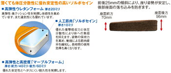 そこで「ソルボらく楽座マット」は前後25ミリの傾斜をもたせ後部座面の落ち込みを防ぐことで、あぐらで生じる背中や腰への負担を抑え、座り姿勢を安定させます。