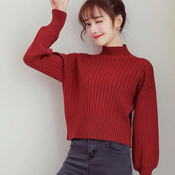 リブ ニット ニットトップス バルーンスリーブ ショート丈 ハイネック レディース トップス セーター 長袖 無地 シンプル ドロップショルダー ドロップスリーブ ボリューム袖 可愛い お洒落 インナー 通学 通勤 お出かけ デート カジュアル