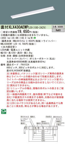 商 品 詳 細商品名インテリア 屋内 照明メーカー名パナソニック Panasonicメーカー器具名称施設・店舗照明仕様商品詳細光源◆LED(白色) ◆色温度:4000 K ◆光源寿命40000時間(光束維持率85%)寸法・質量◆幅:150 mm ◆長:1250 mm ◆高:50 mm◆質量:2 kg仕様・注意事項LED照明の安心品質◆器具光束:3050 lm ◆安定器出力型:定格出力型 ◆安定器補足:<出力固定型> ◆電圧:100〜242 V ◆消費電力:20.6 W ◆消費効率:148 lm/W◆【本体】鋼板(白色粉体塗装)◆【ライトバー(カバー)】ポリカーボネート(乳白)◆Ra83【適合ガード】FK41534◆600ピッチ、800ピッチのボルトに対応します。